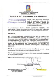 Decreto nº 307-2022 – Dispõe sobre Progressão Funcional pela Via Academica a Servidor do Quadro Efetivo Senhor Ridegard Tenorio do Amaral.