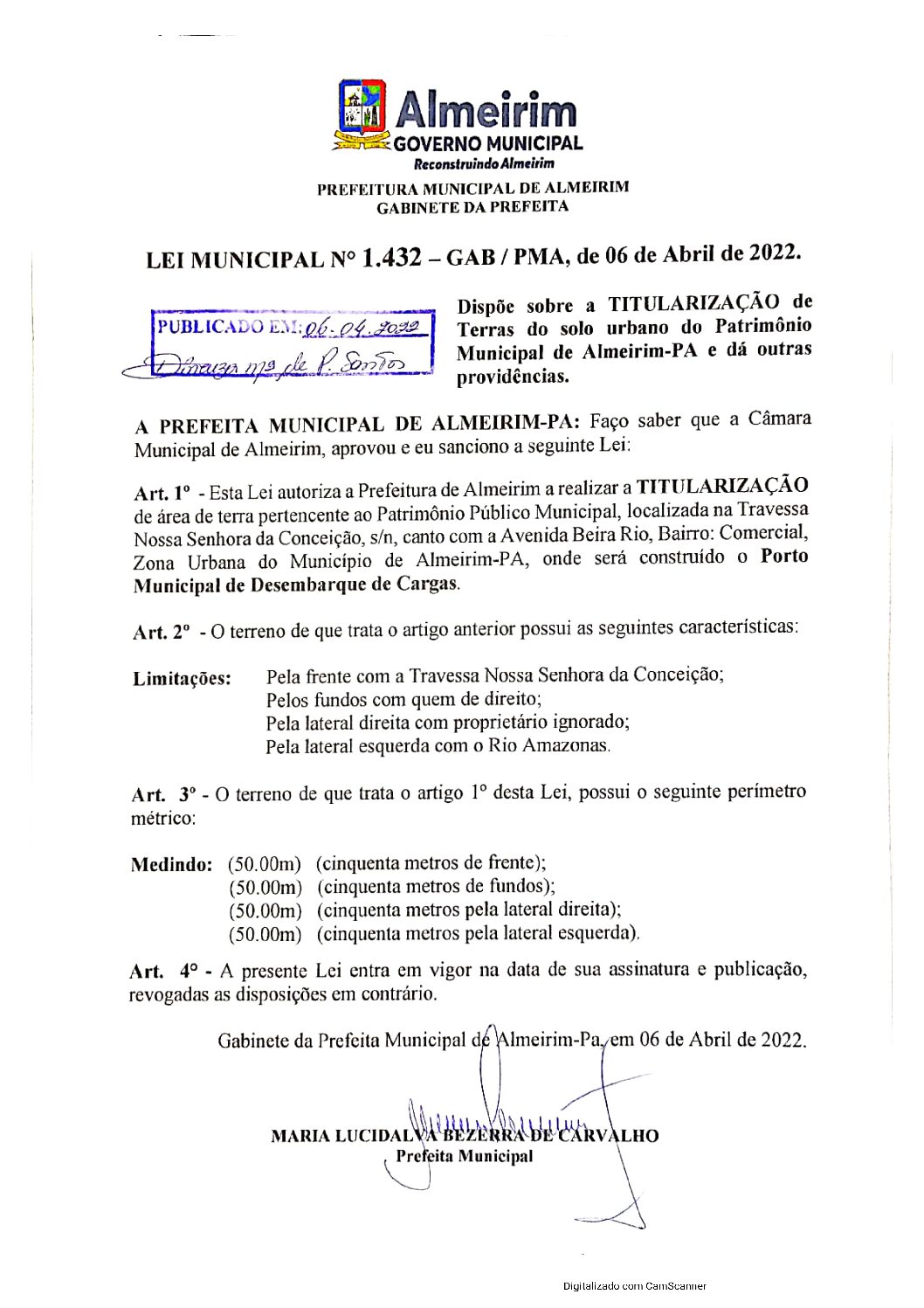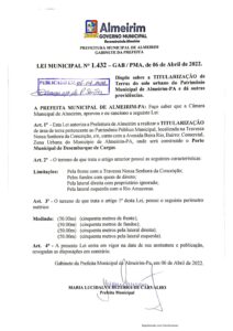 Lei Municipal nº 1.432-2022 – Dispõe sobre TITULARIZAÇÃO de Terra do Solo Urbano do Patrimônio Munipal de Almeirim-PA.