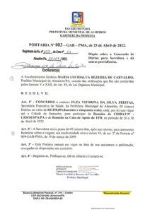 Portaria nº 083-2022 – Dispõe sobre Concessão de Diárias para Deslocamento de Servidora Senhora Elza Vitorina da Silva Freitas.