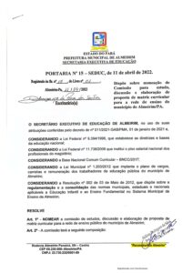 Portaria nº 015-2022 SEDUC – Dispõe sobre Nomeação de Comissão para Estudo Discussão e Elaboração de Proposta de matriz Curricular para Rede de Ensino do Municipio de Almeirim-PA.