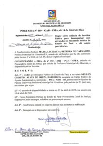 Portaria nº 069-2022 – Dispõe sobre cedencia de Servidor do Quadro Efetivo para desempenhar Atividades no Ministério Publico Senhora Kellen Cristina Alves de Souza Barreiros.
