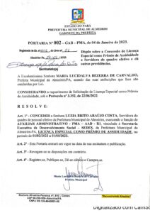 Portaria nº 002-2023 – Dispõe sobre Concessão de Licença Especial como Premio de Assiduidade a Servidora do Quadro efetivo e da outras providencias
